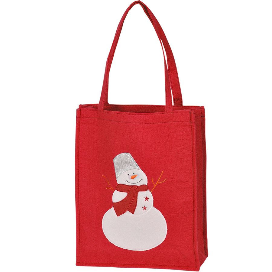 Сумка "СНЕГОВИК" с аппликацией, красный, 40*33*9 см, войлок, шелкография