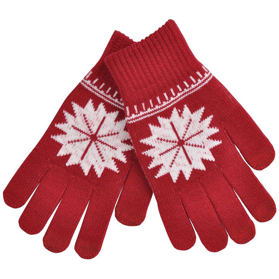 Перчатки для сенсорных экранов "СНЕЖИНКА", красный, М, акрил 40%; шерсть 30%; нейлон 30%, шеврон