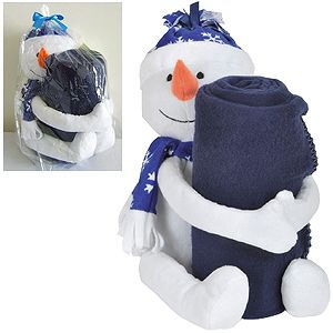 Плед с игрушкой "СНЕГОВИК", флис 220 гр, 100*120 см, игрушка 26 см, вышивка