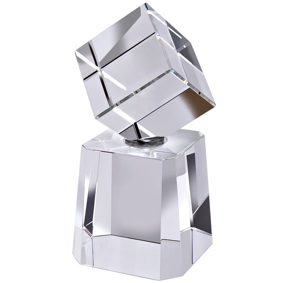 Стела "Куб вращающийся"; 8.5х9.2х14.8 см; стекло, дерево; лазерная гравировка