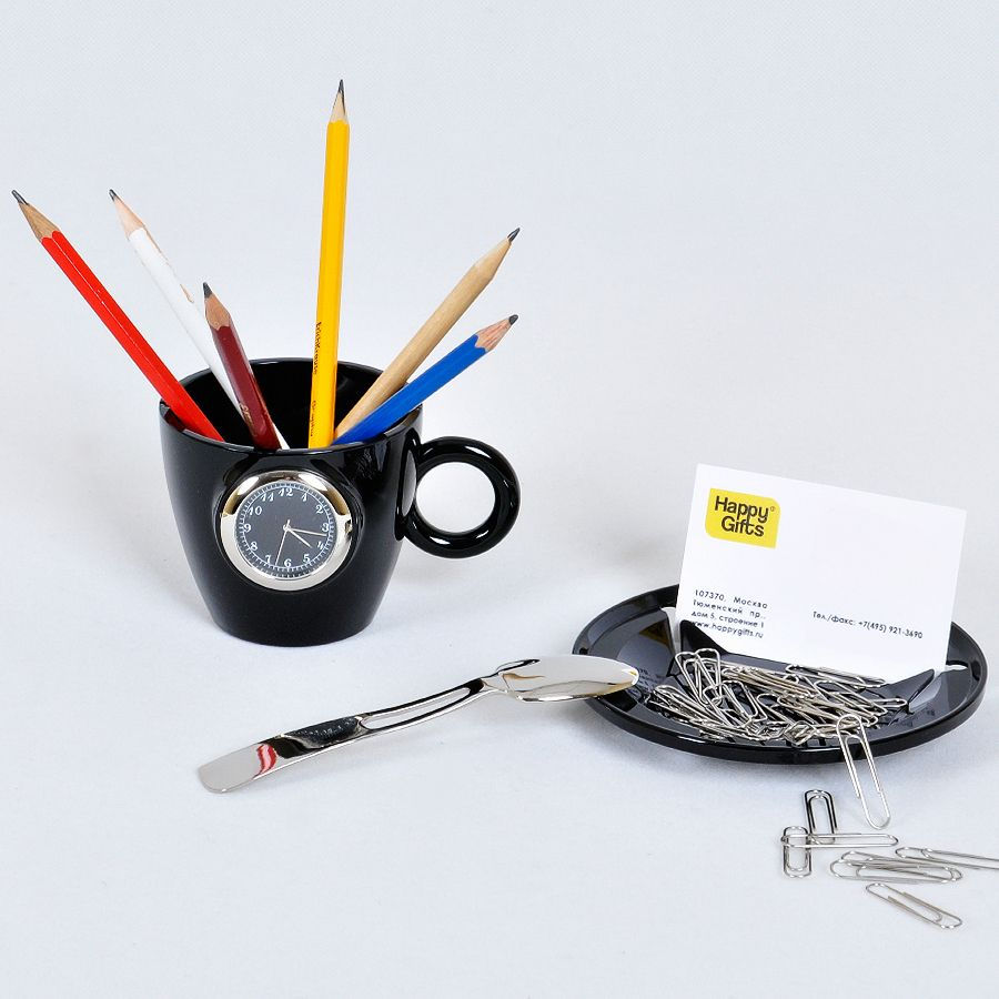Набор офисный "Чайное трио": часы, подставка для визиток и мобильного телефона и нож для вскрыт