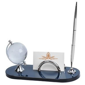 Набор настольный: подставка для визиток, авторучка "ГЛОБУС"; 21,5х8,5х10,3 см; металл, стекло; лазер