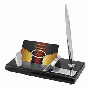 Набор настольный "Статус": подставка для визиток и авторучка; 16,5х8,6х3,8 см; дерево, металл; шильд