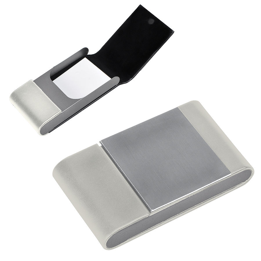 Визитница двухстороняя "Senator", белый, 9,5х6,5 см, металл, искусственная кожа, лазерная гравировка
