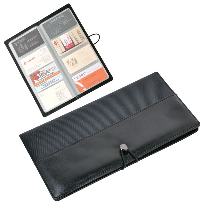 Визитница "New Style" на резинке (60 визиток), черный с зеленым; 19,8х12х2 см; нейлон;