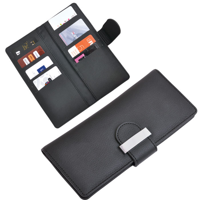 Футляр для пластик. карт,визиток,карт памяти и SIM-карт, черный с голубым, 7х10,3х1,2 см;иск.кожа