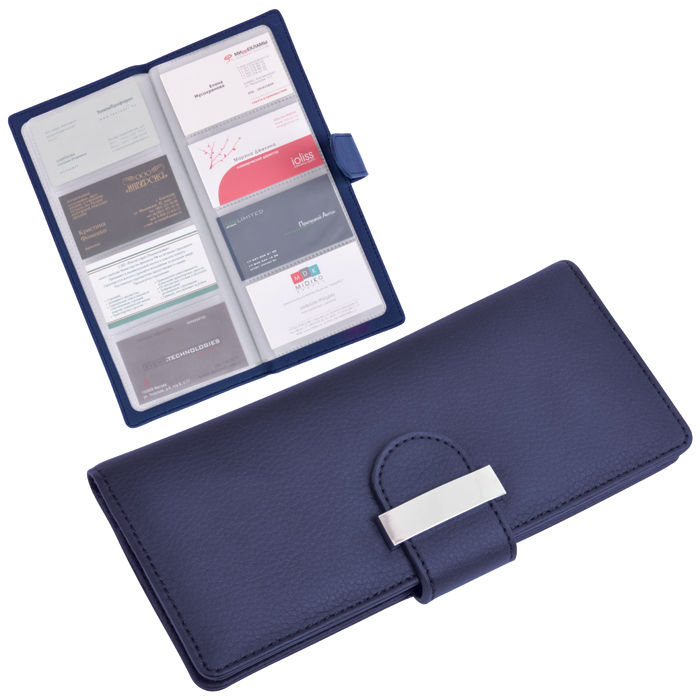 Визитница "New Style" на резинке (60 визиток), черный с голубым; 19,8х12х2 см; нейлон;