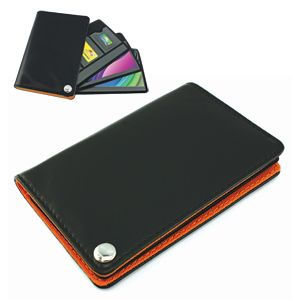Футляр для пластик. карт,визиток,карт памяти и SIM-карт, черный с оранжевым, 7х10,3х1,2 см;иск.кожа