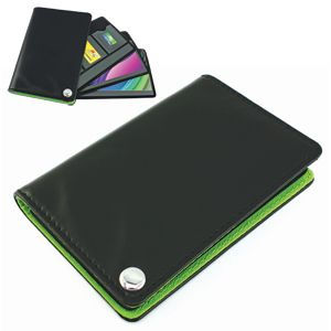 Футляр для пластик. карт,визиток,карт памяти и SIM-карт, черный с зеленым, 7х10,3х1,2 см;иск.кожа