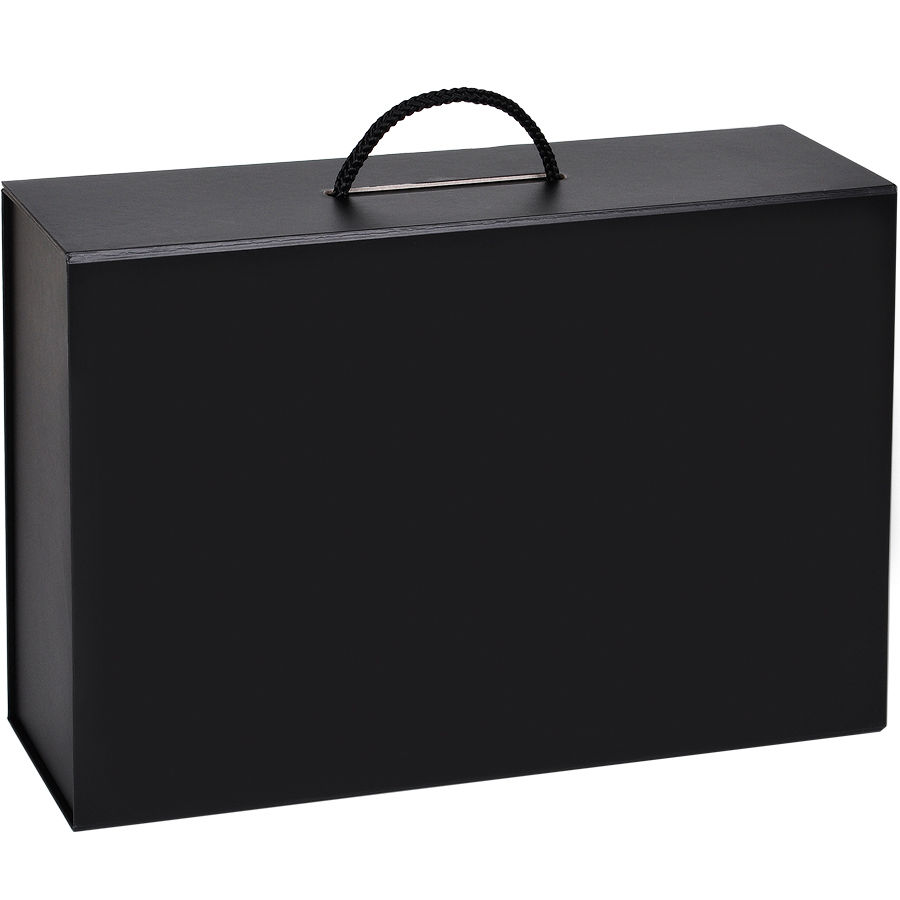 Коробка складная подарочная с ручкой, черный, 37x25 x10cm, кашированный картон, тисн