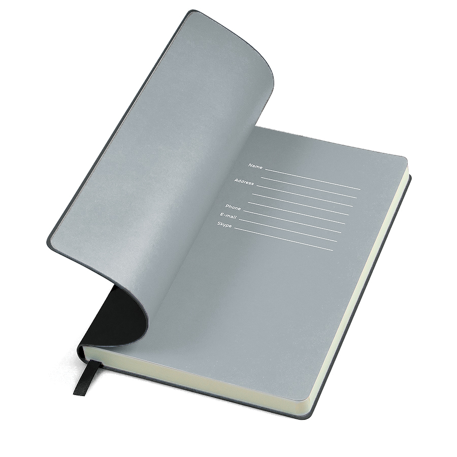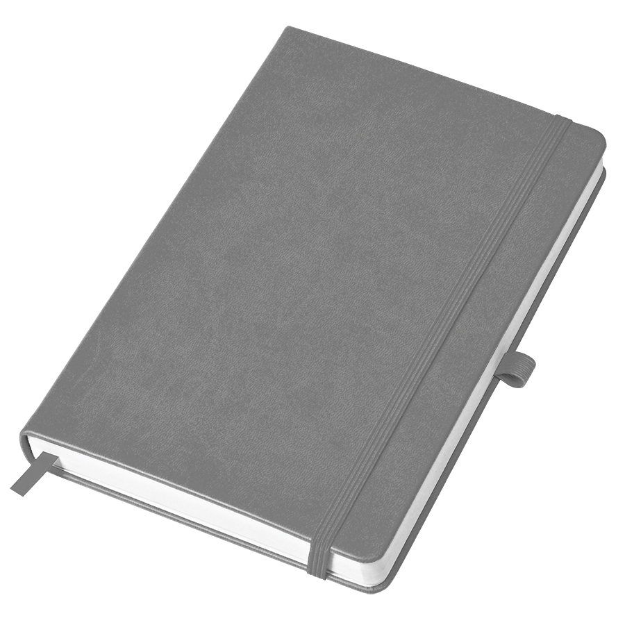 Бизнес-блокнот "Justy", 130*210 мм, серый, твердая обложка, резинка 7 мм, блок-линейка, тиснение