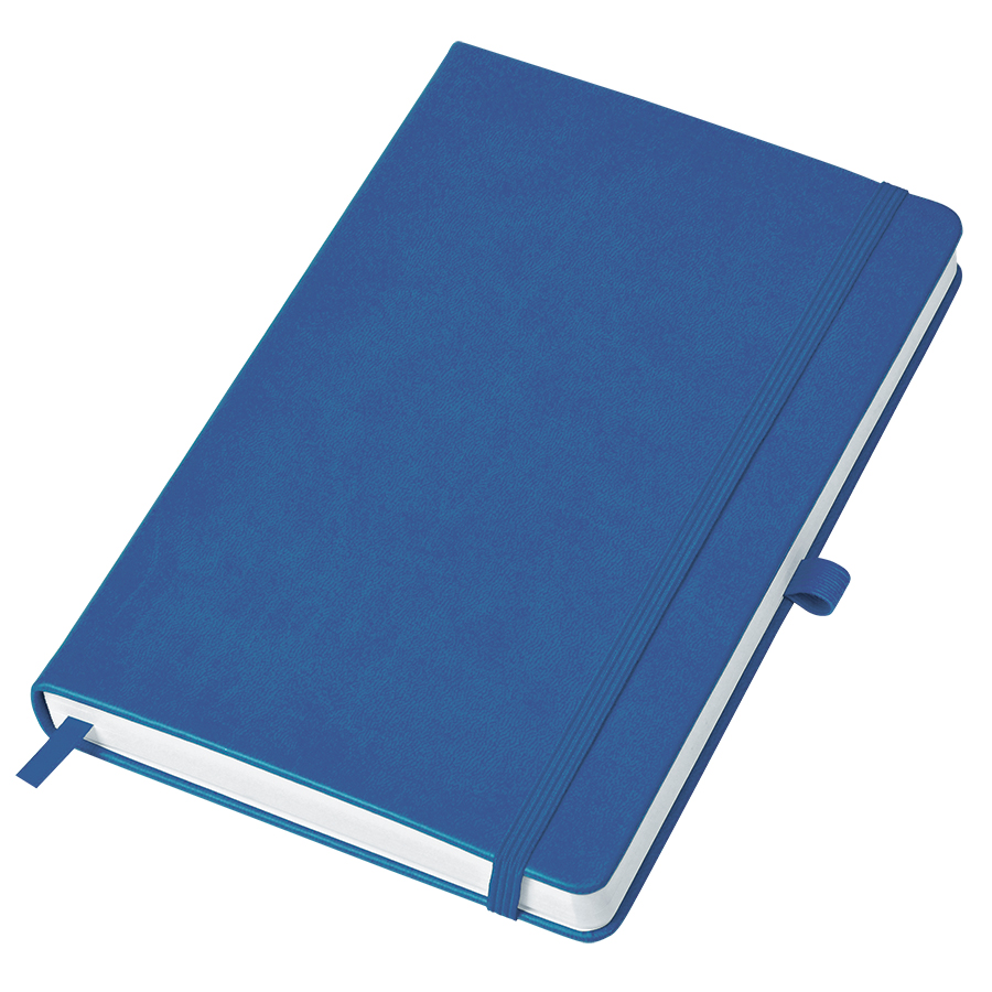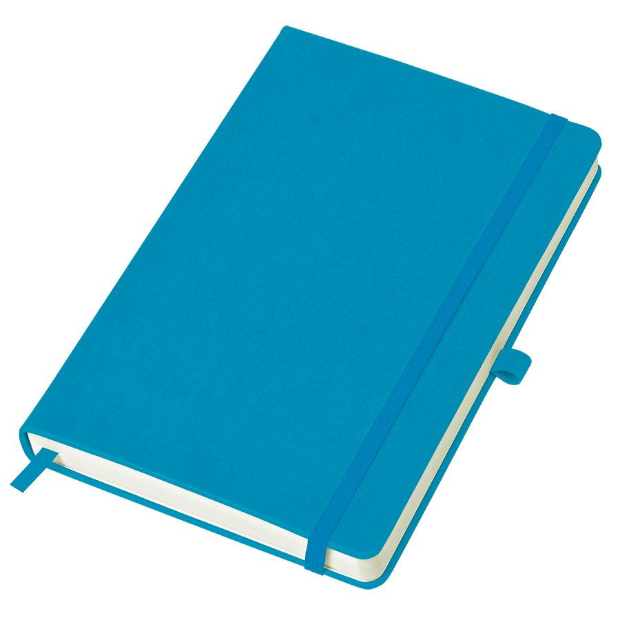 Бизнес-блокнот "Justy", 130*210 мм, голубой, твердая обложка, резинка 7 мм, блок-линейка, тиснение