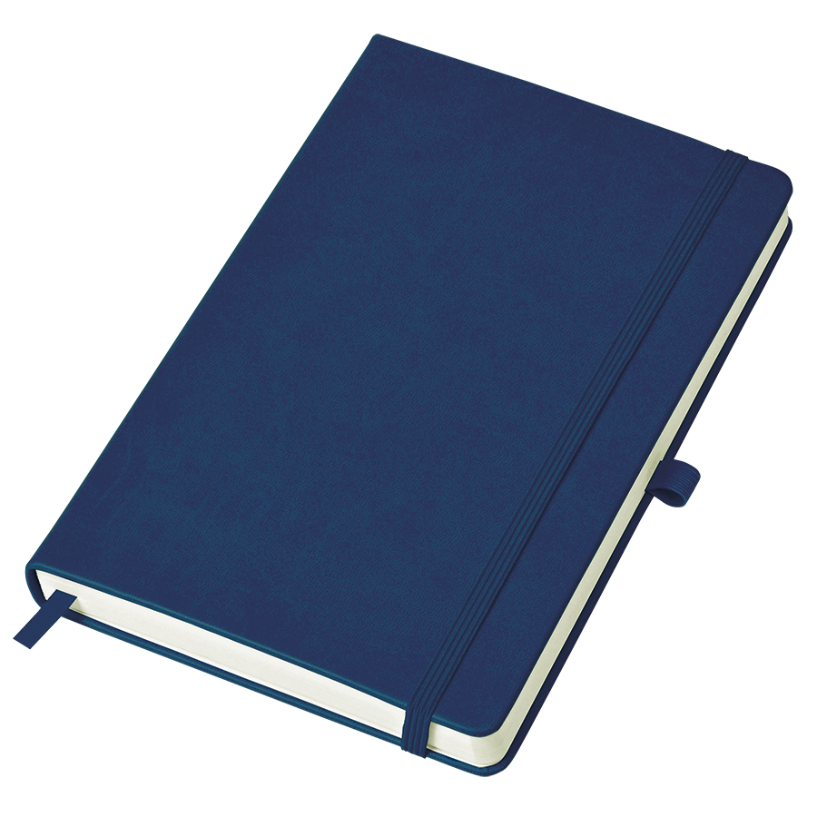 Бизнес-блокнот "Justy", 130*210 мм, темно-синий, тв. обложка, резинка 7 мм, блок-линейка, тиснение