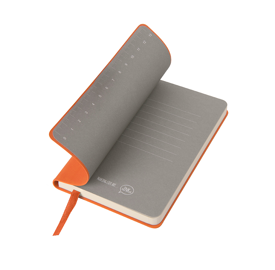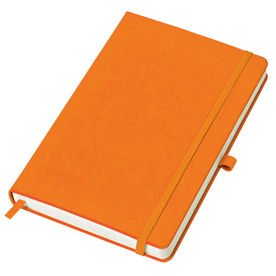 Бизнес-блокнот "Justy", 130*210 мм, оранжев, твердая обложка, резинка 7 мм, блок-линейка, тиснение