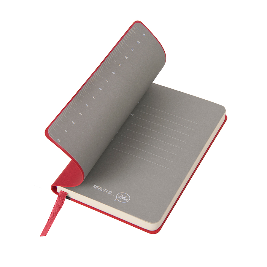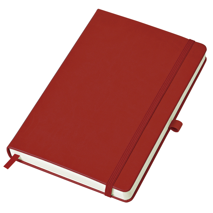 Бизнес-блокнот "Justy", 130*210 мм, красный, твердая обложка, резинка 7 мм, блок-линейка, тиснение
