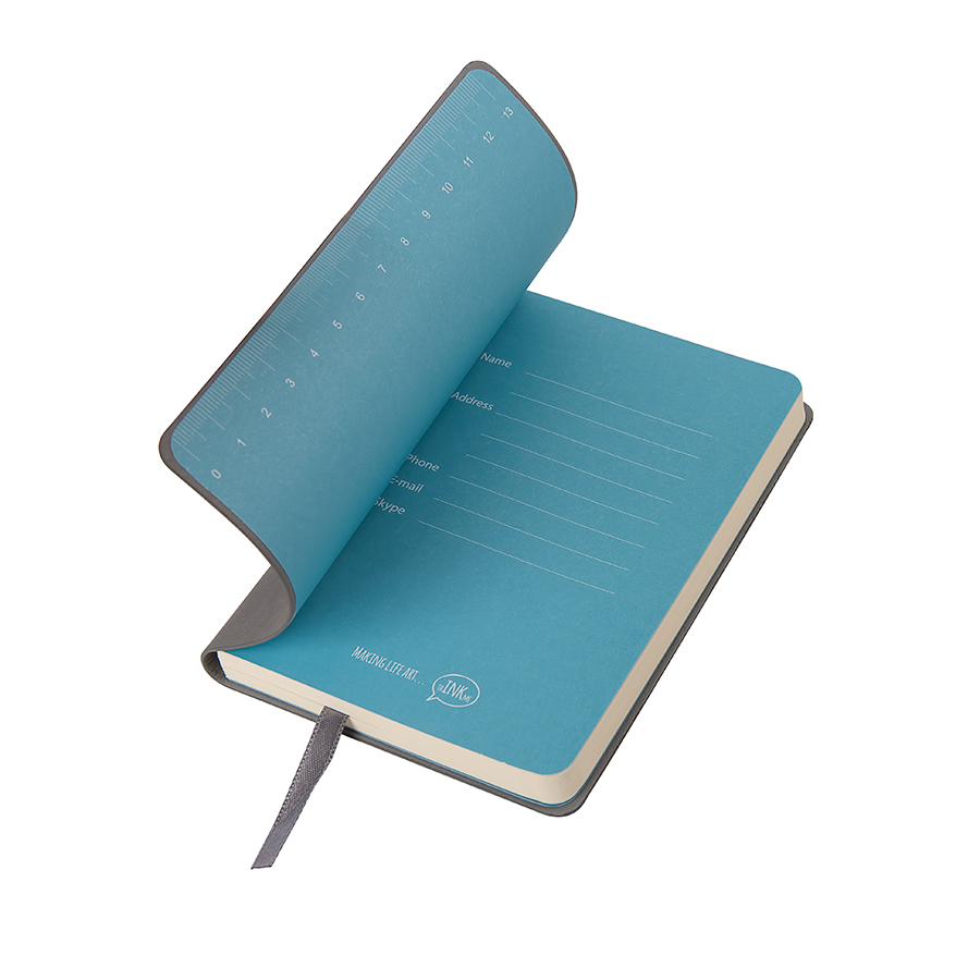 Бизнес-блокнот "Funky", 130*210 мм, синий, серый форзац, мягкая обложка, блок-линейка