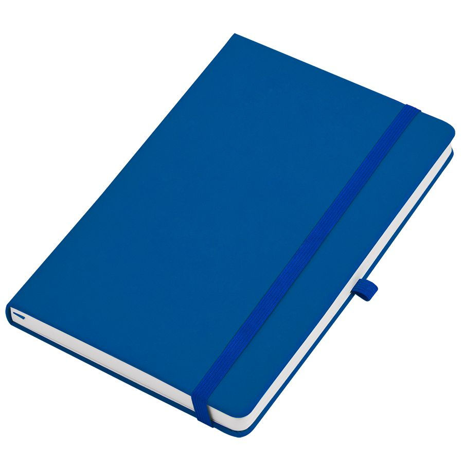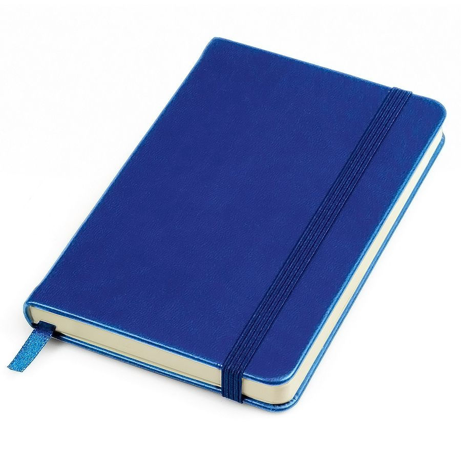 Бизнес-блокнот "Justy", 130*210 мм, синий, твердая обложка, резинка 7 мм, блок-линейка, тиснение