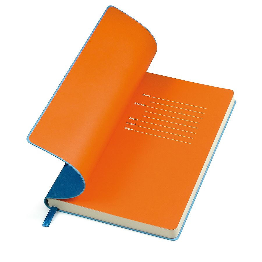 Бизнес-блокнот "Funky", 130*210 мм, голубой, оранжеый форзац, мягкая обложка, блок-линейка