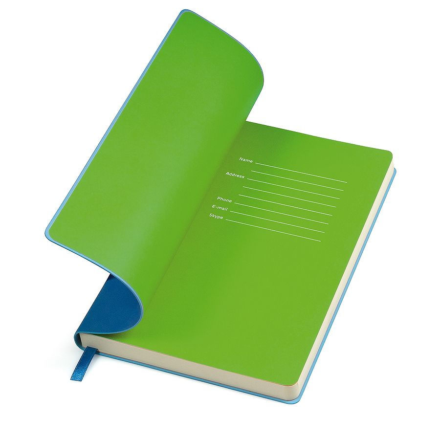 Бизнес-блокнот "Funky", 130*210 мм, голубой, зеленый форзац, мягкая обложка, блок-линейка