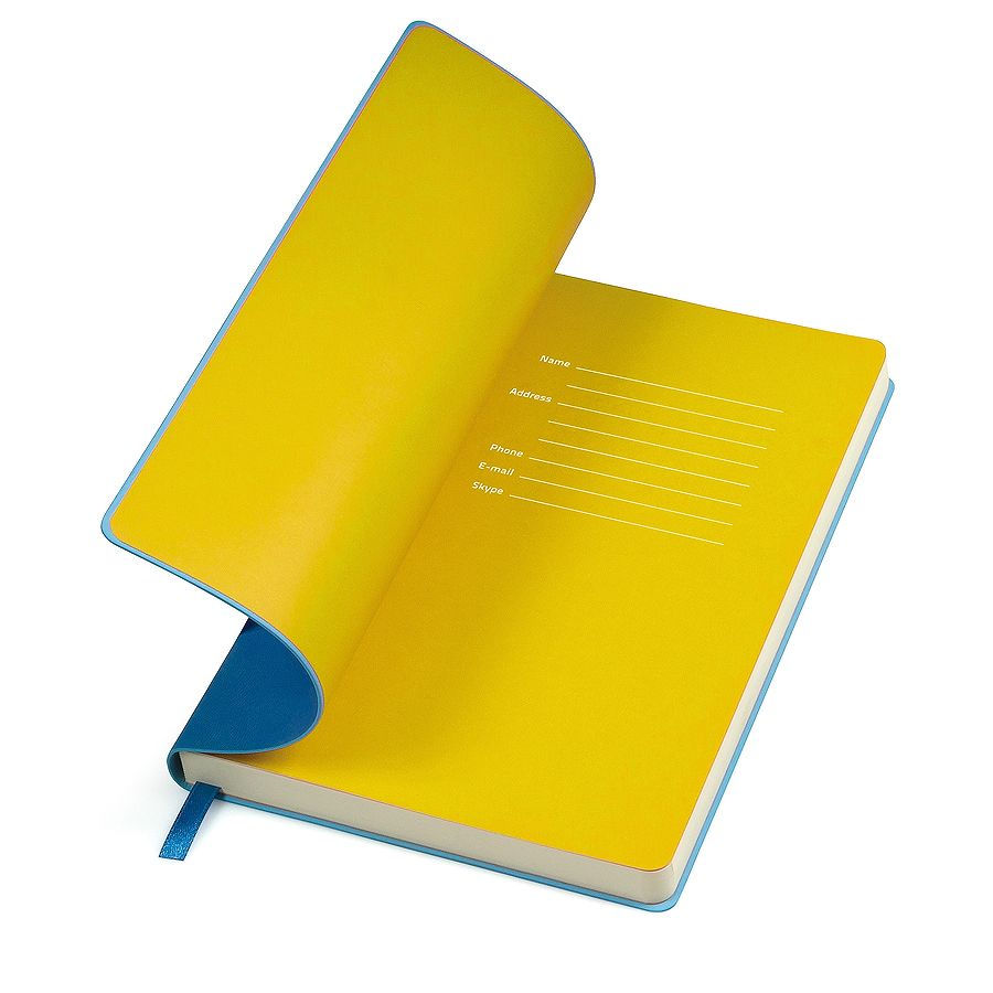 Бизнес-блокнот "Funky", 130*210 мм, голубой, желтый форзац, мягкая обложка, блок-линейка