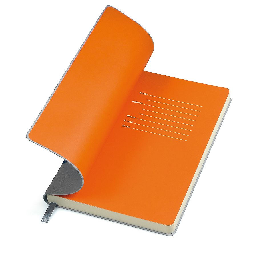 Бизнес-блокнот "Funky", 130*210 мм, серый, оранжевый форзац, мягкая обложка, блок-линейка