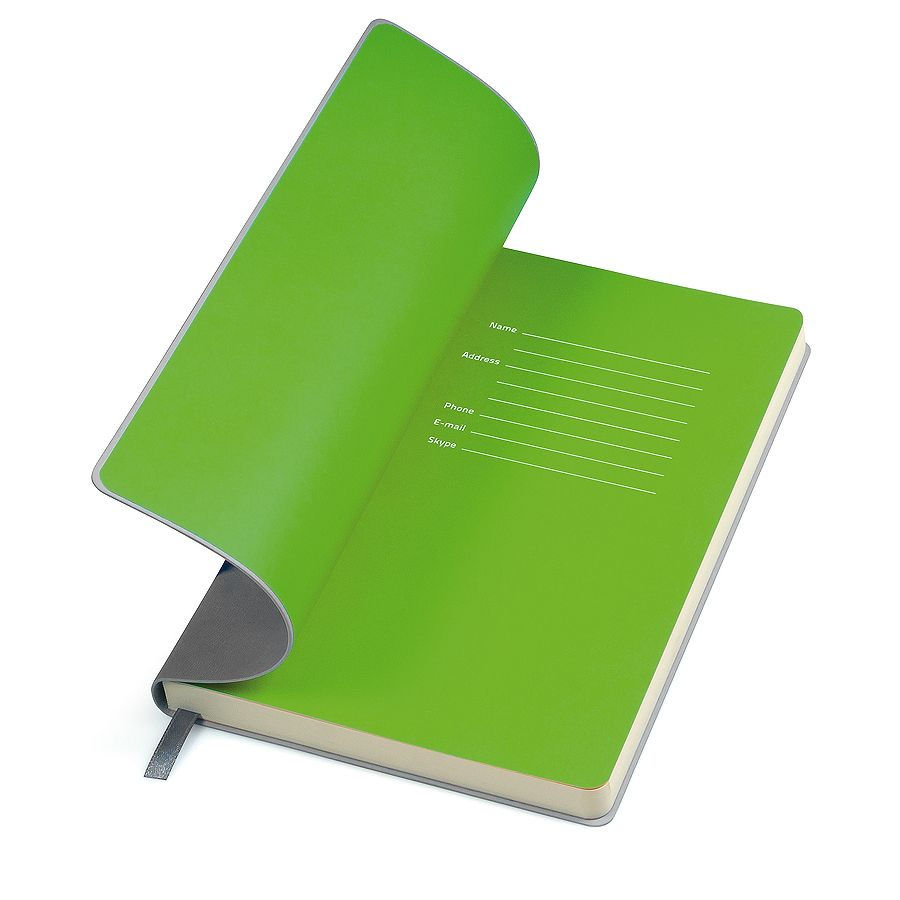 Бизнес-блокнот "Funky", 130*210 мм, серый, зеленый форзац, мягкая обложка, блок-линейка