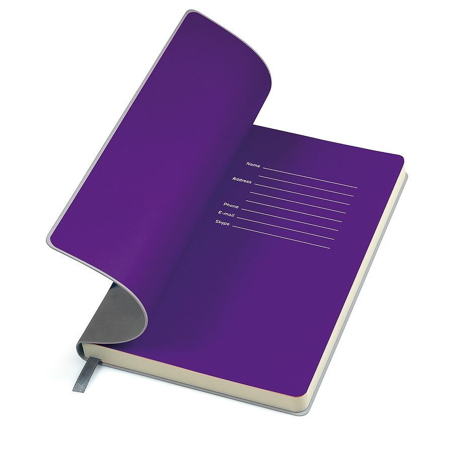 Бизнес-блокнот "Funky", 130*210 мм, серый/фиолетовый форзац, мягкая обложка, блок-линейка