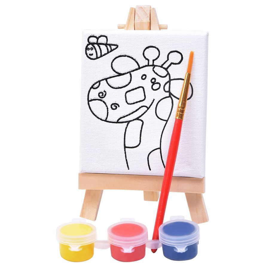 Набор для раскраски "Жираф":холст,мольберт,кисть, краски 3шт, 7,5х12,5х2 см, дерево, холст