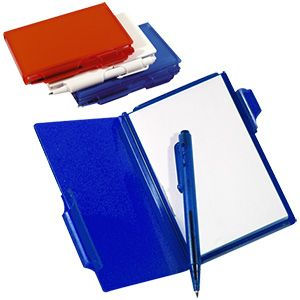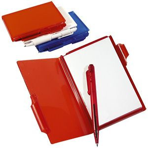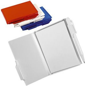 Блокнот для записей с авторучкой; белый; 10,5х7,9х1,1 см; пластик; тампопечать