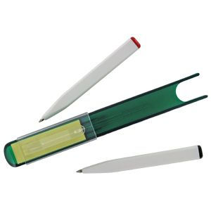 Футляр с двумя авторучками и листиками для записи post-it; зеленый; 15,1х2,1х1,9 см; пластик; тампоп