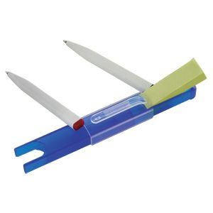 Футляр с двумя авторучками и листиками для записи post-it; синий; 15,1х2,1х1,9 см; пластик; тампопеч