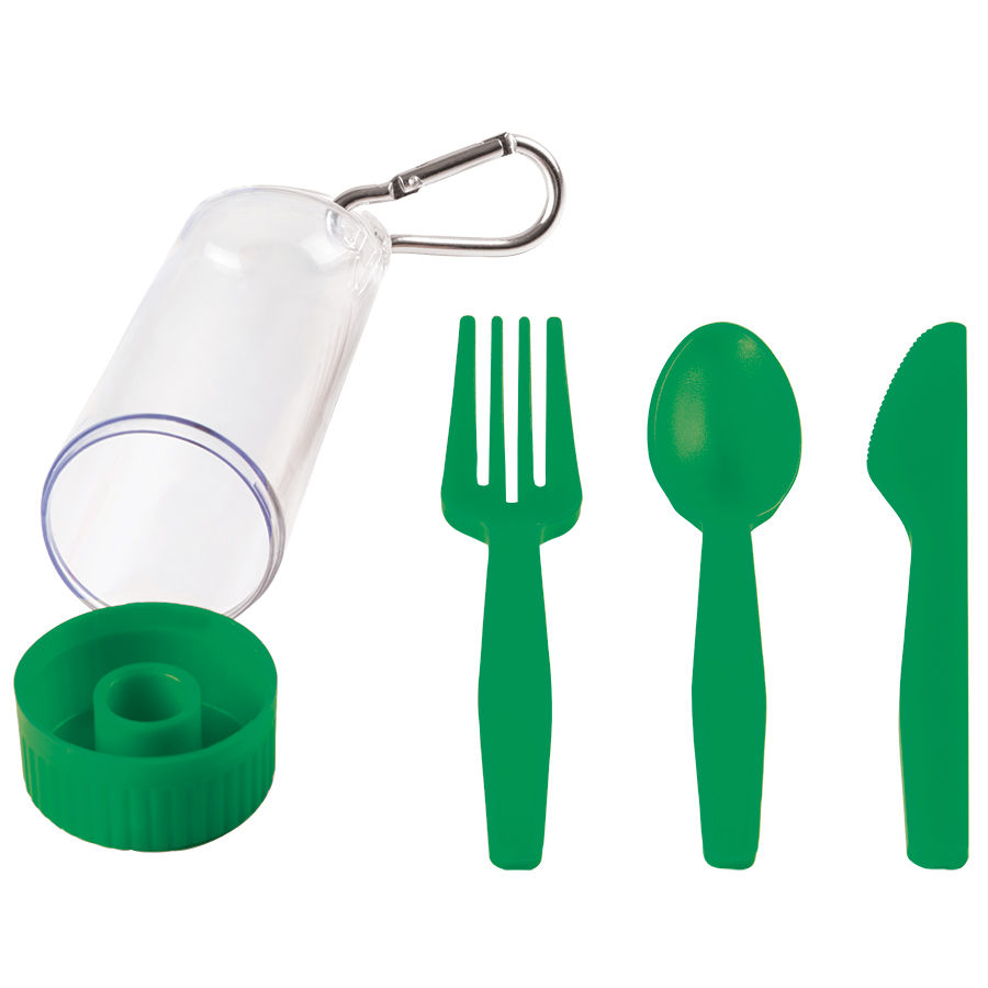 Набор "Pocket":ложка,вилка,нож в футляре с карабином, зеленый, 4,2х15см,пластик