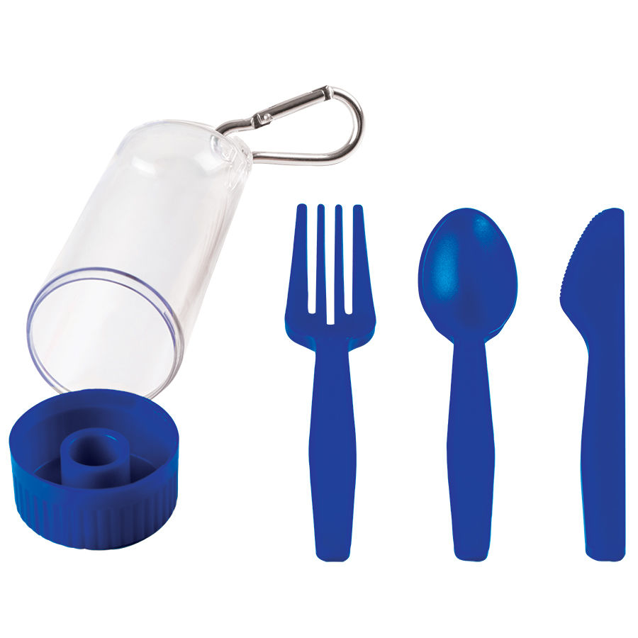 Набор "Pocket":ложка,вилка,нож в футляре с карабином, синий, 4,2х15см,пластик