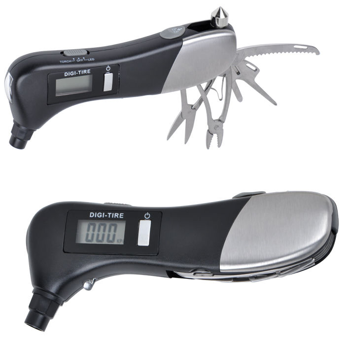 Манометр с набором инструментов и двумя видами подсветки (1 LED); 16х6,5х2,5 см; металл, пластик