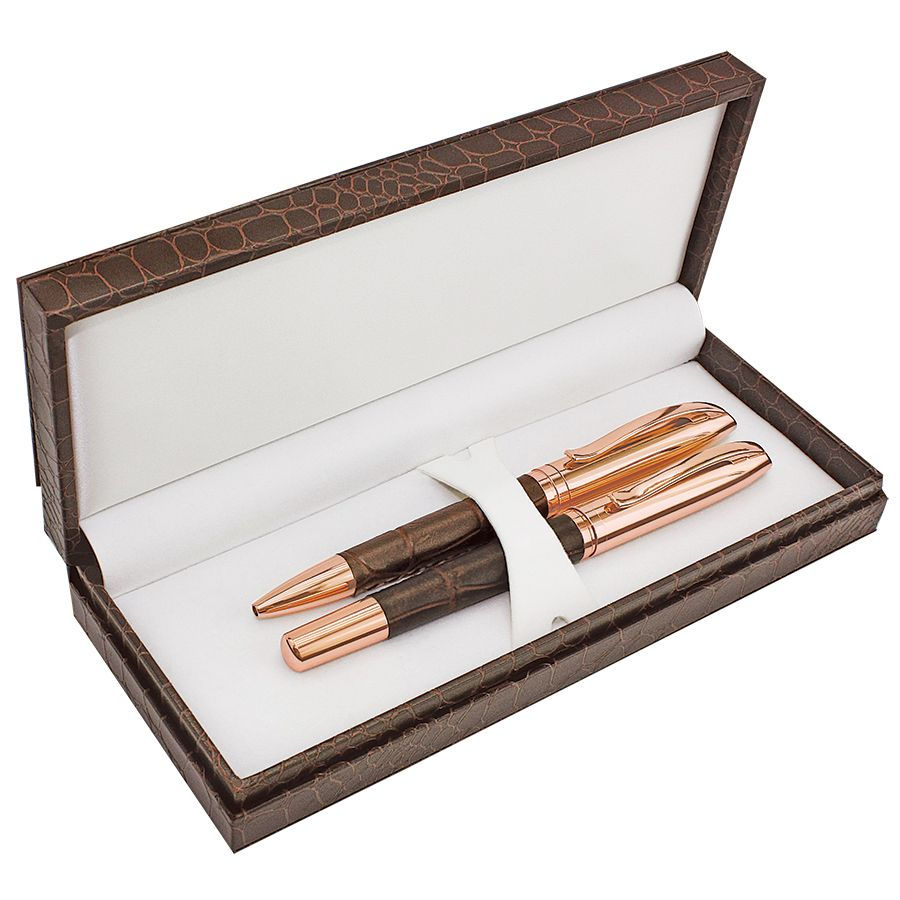 ALLIGATOR, набор: ручка шариковая и роллер в футляре, коричневый/розовое золото, металл/иск. кожа