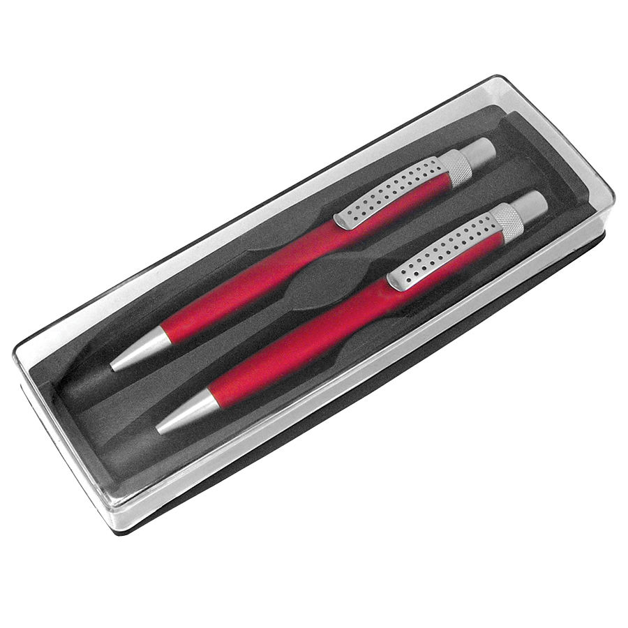 SUMO SET, набор в футляре: ручка шариковая и карандаш механический, красный/серебристый, металл/плас