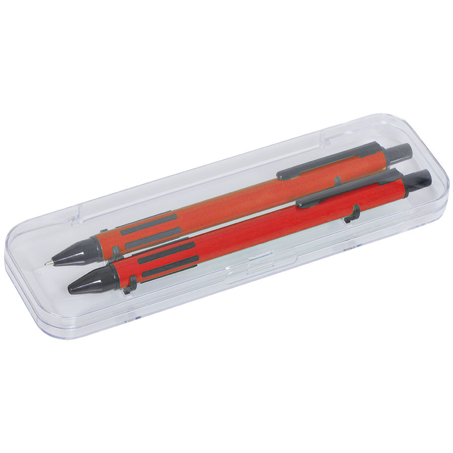 FUTURE, набор ручка и карандаш в прозрачном футляре, красный, металл/пластик