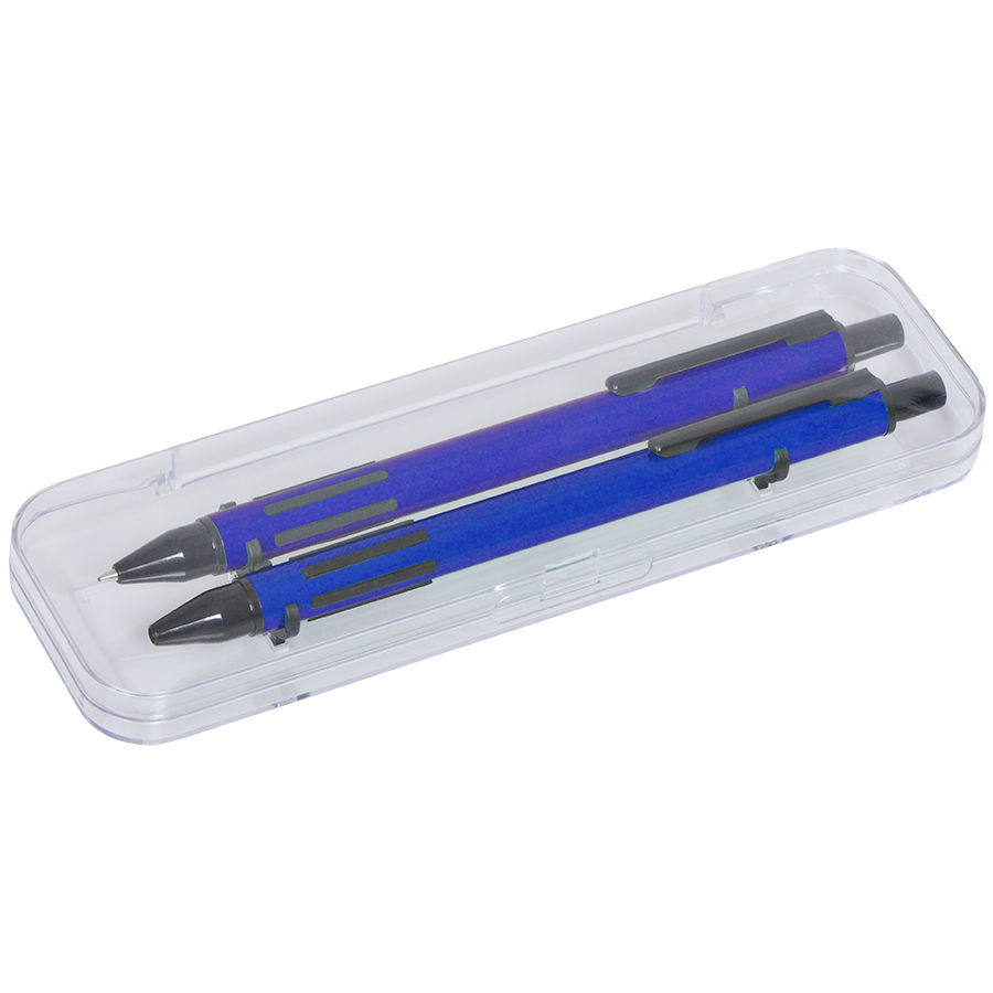 FUTURE, набор ручка и карандаш в прозрачном футляре, синий, металл/пластик