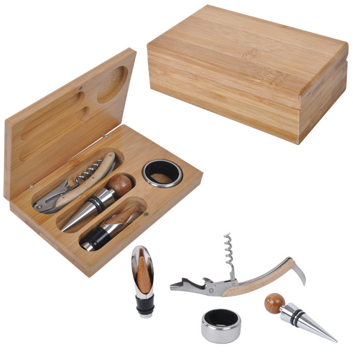 Набор для вина (4 предмета); 23х13х5 см; дерево, металл; лазерная гравировка, шильд