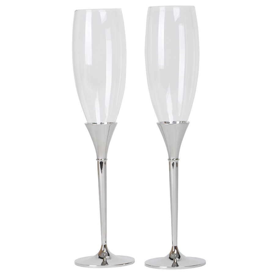 Бокалы для шампанского "Crystal" (2шт), D=6,8см, Н=25,2см, стекло, посеребренный металл,лаковое покр