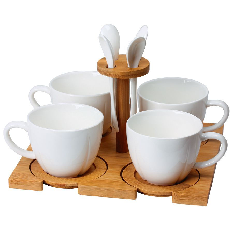 Набор "Ксю":чайная пара (4шт) и чайная ложка (4шт) с подставкой в подарочной упаковке,200мл,фарфор,