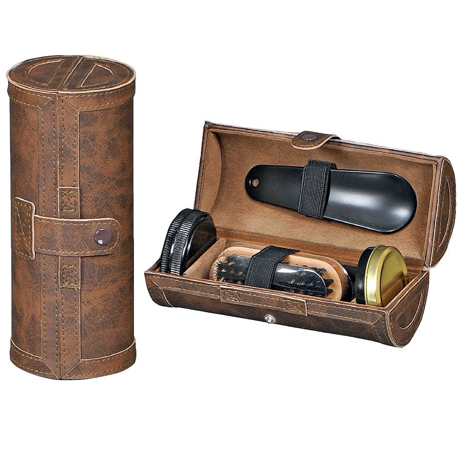 Набор для обуви "Блеск" в тубусе: ложка, щетка, крем, ткань для полировки, иск. кожа, лазерн.гр