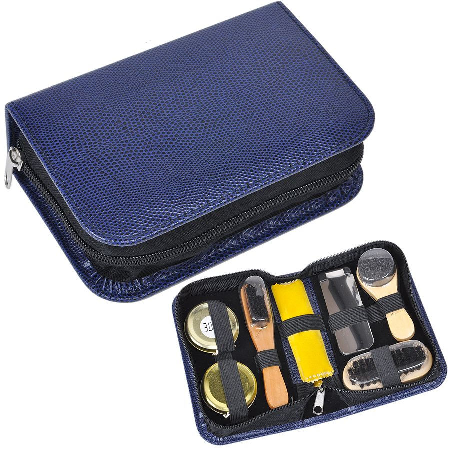 Набор для чистки одежды и обуви в пенале, 7 предметов; синий, 17,2х5,5х10,5 см; металл, дерево,
