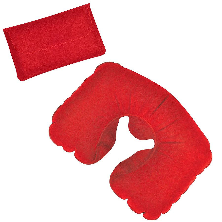 Подушка надувная дорожная в футляре; красный; 43,5х27,5 см; твил; шелкография