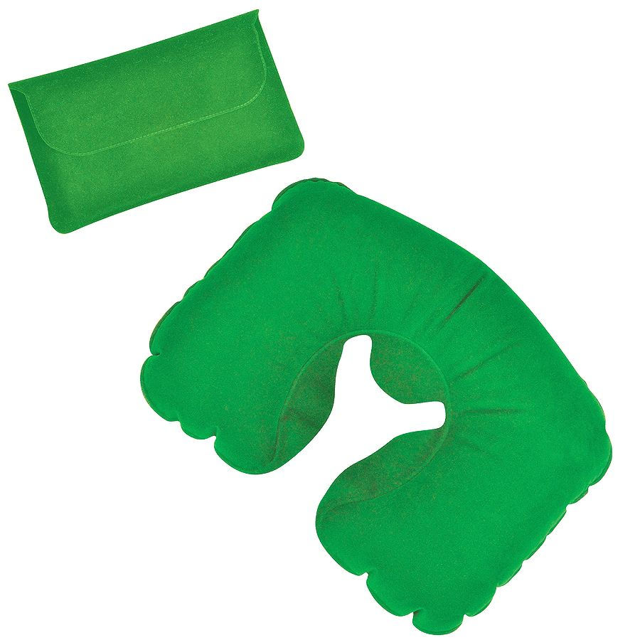 Подушка надувная дорожная в футляре; зеленый; 43,5х27,5 см; твил; шелкография