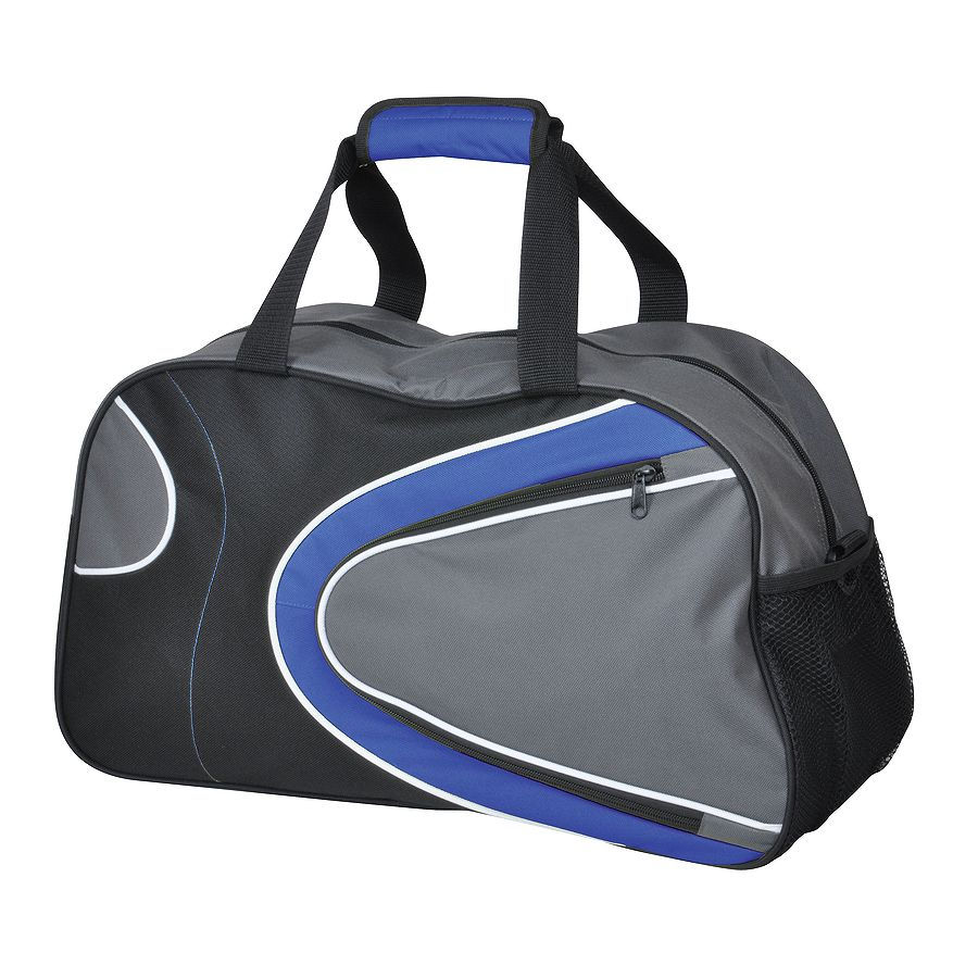 Сумка дорожная "Sporty"; синий с черным; 52х27х26 см; полиэстер; шелкография