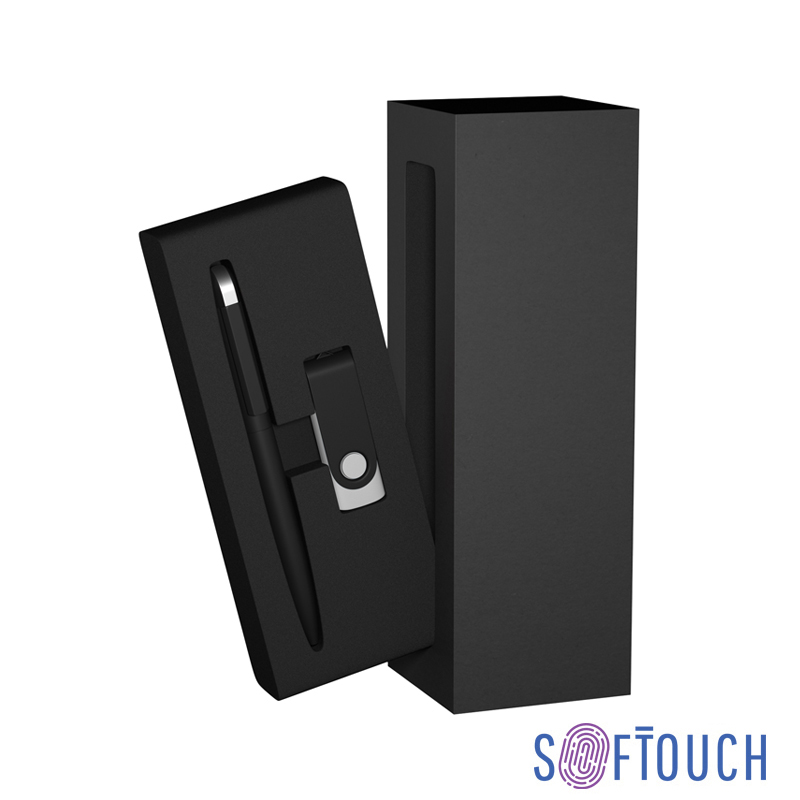 Набор ручка + флеш-карта 16Гб + зарядное устройство 4000 mAh в футляре, покрытие soft touch