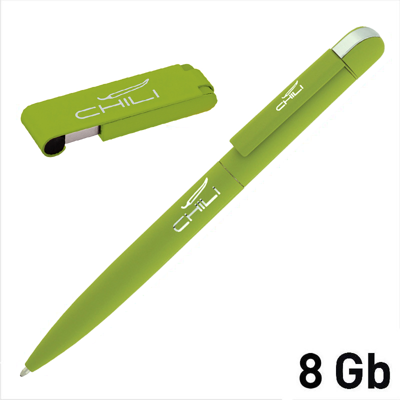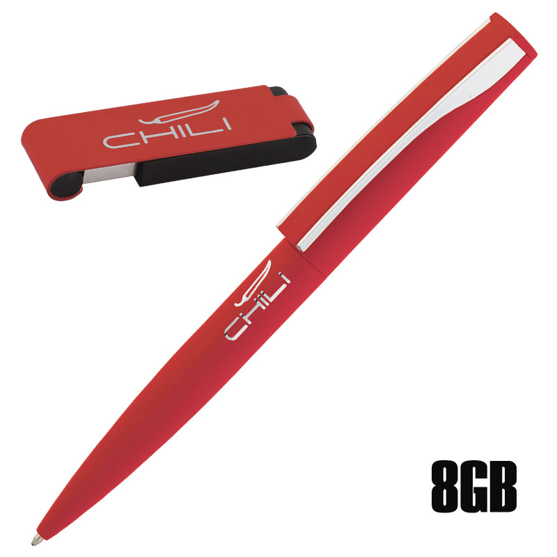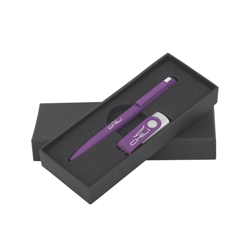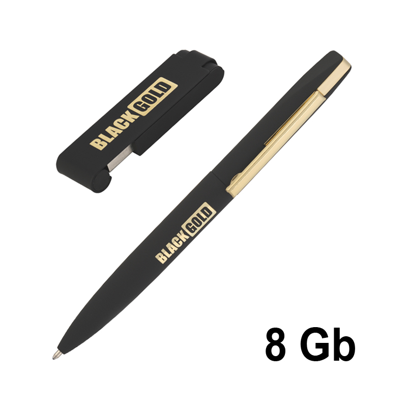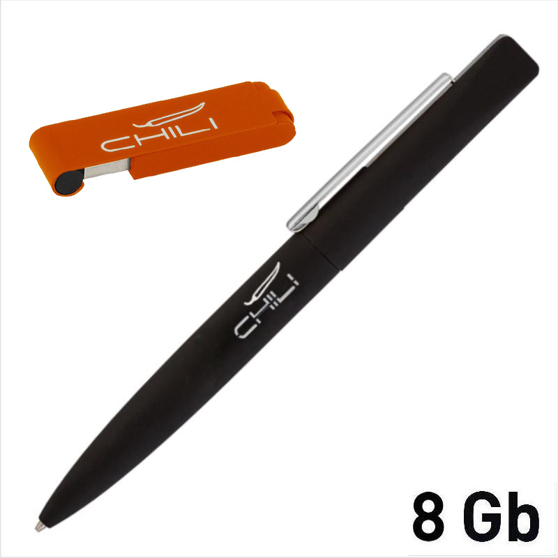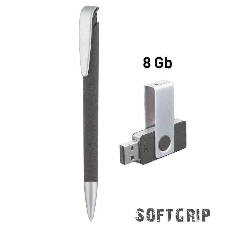Набор ручка + флеш-карта 8Гб + зарядное устройство 2800 mAh в футляре, покрытие soft touch
