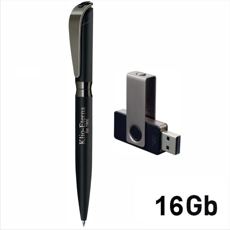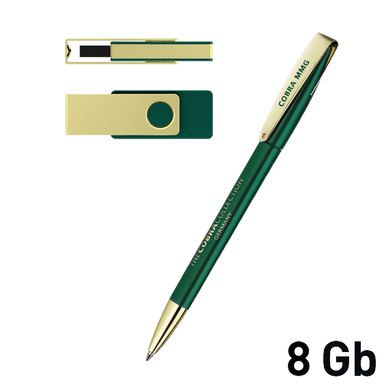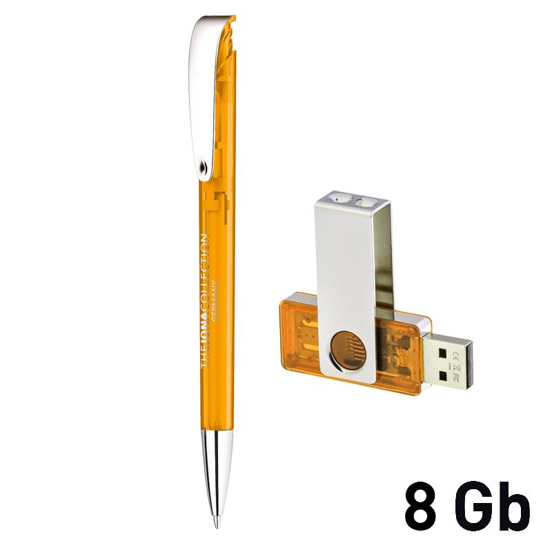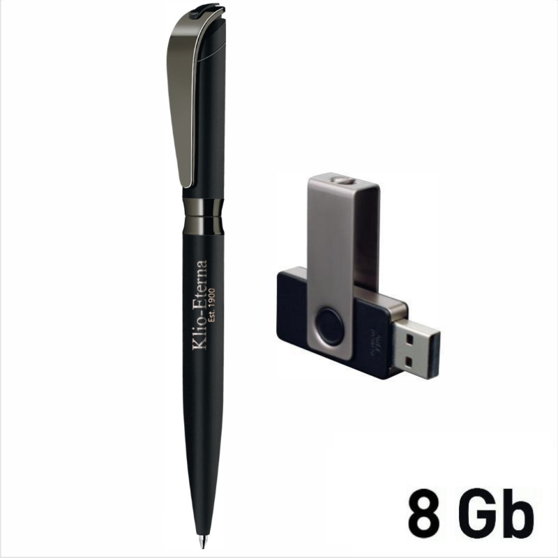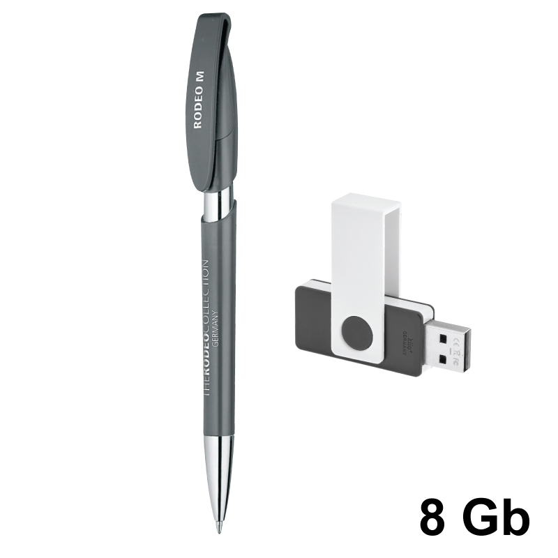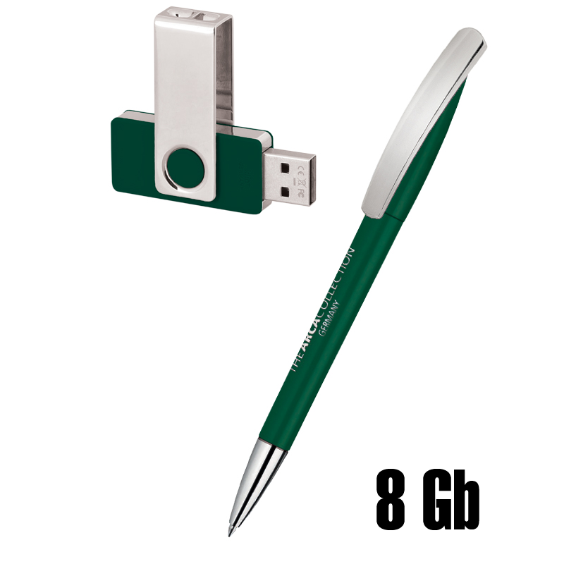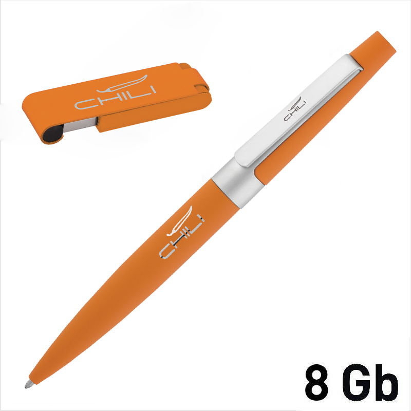 Набор ручка + флеш-карта 8Гб + зарядное устройство 2800 mAh в футляре, покрытие soft touch