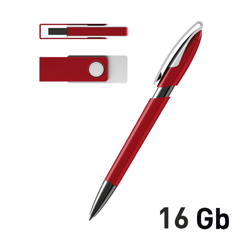 Набор ручка + флеш-карта 16Гб + зарядное устройство 4000 mAh в футляре, soft touch